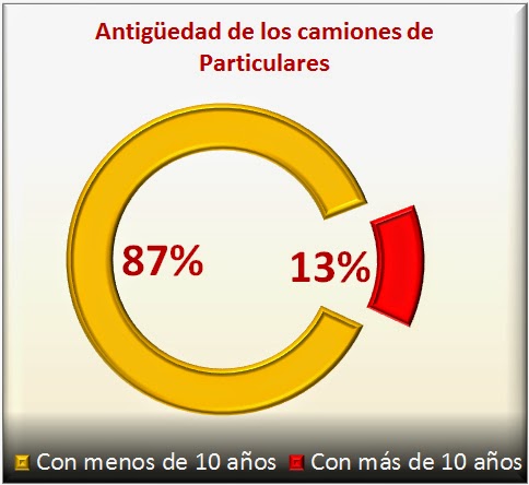 Entre los camiones que aparecen con propietarios particulares, el 13 por ciento supera los diez años de antigüedad permitidos por la ley, en tanto que entre las empresas esta proporción es del 9 por ciento.