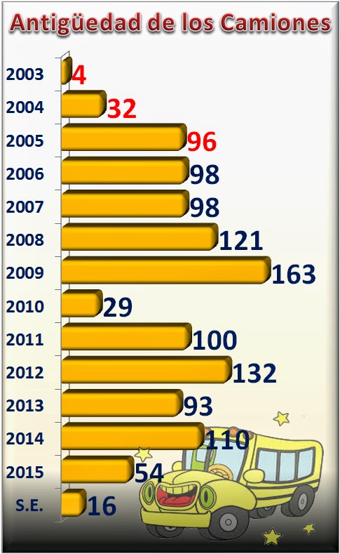 Independientemente de esas discrepancias, conforme al padrón de unidades del transporte urbano se mantienen en circulación vehículos modelos de 2003 a 2015. La Ley de Transporte Público advierte en el artículo 46 que la antigüedad máxima de los camiones será de diez años.