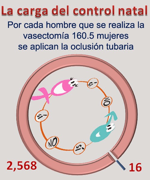 De acuerdo con esos reportes, la carga del control de la natalidad por la vía de intervenciones definitivas como la vasectomía y la oclusión tubaria, la llevan prácticamente en un cien por ciento las mujeres, pues por cada hombre al que la aplican la vasectomía, 160.5 mujeres se realizan la oclusión tubaria.